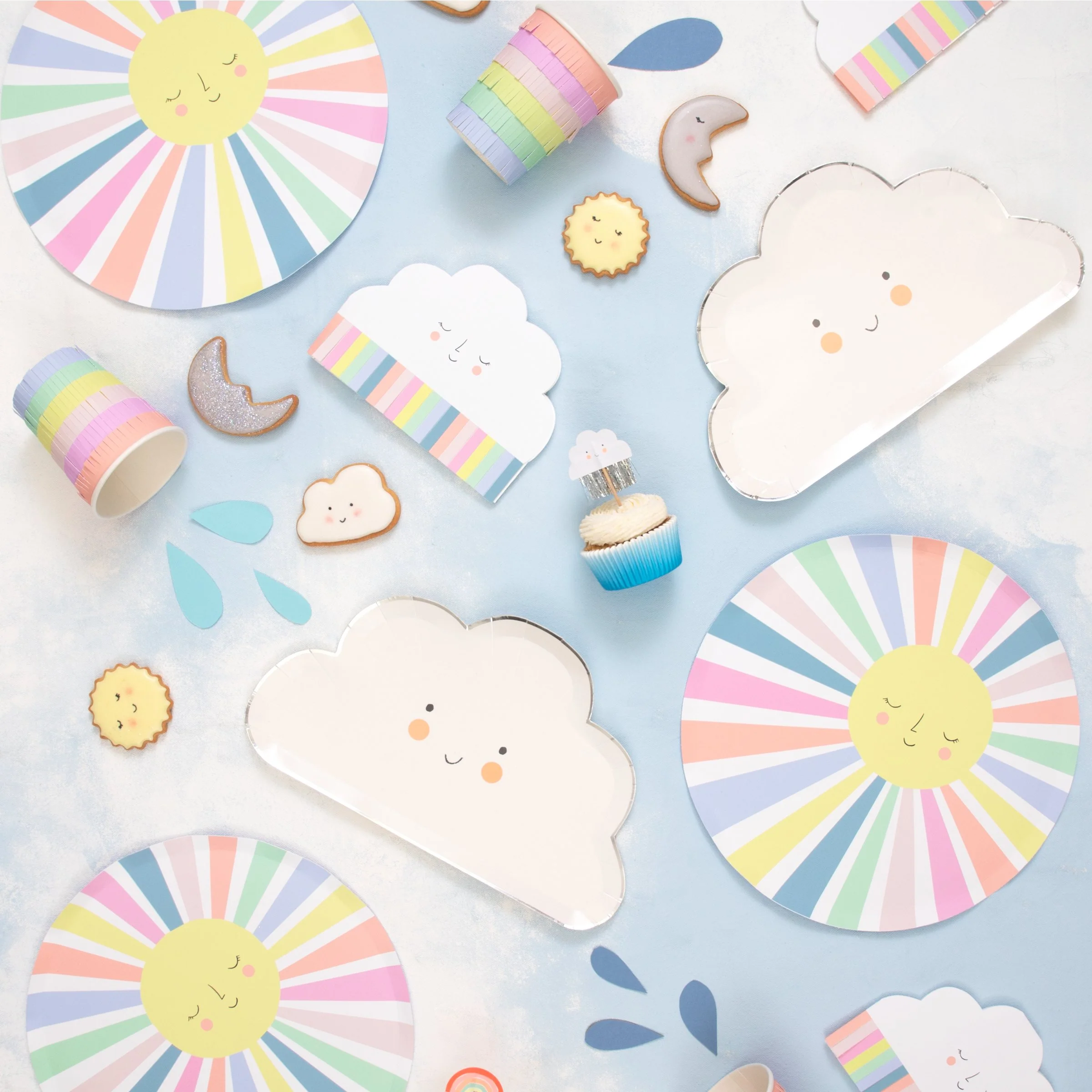 These gorgeous paper plates will make any party look so cheerful. They feature a smiling sun with lots of colorful rays. They are perfect for any celebration, including baby showers or birthdays.